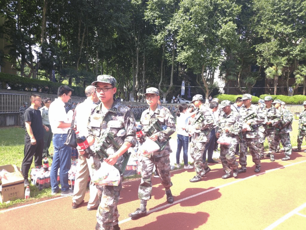 正在军训的本科生新生以及军训教官、指导员等,送来日常生活用品为新生助力打气,鼓励同学们要不畏艰难、勇于用勤劳和汗水开辟人生新篇章。