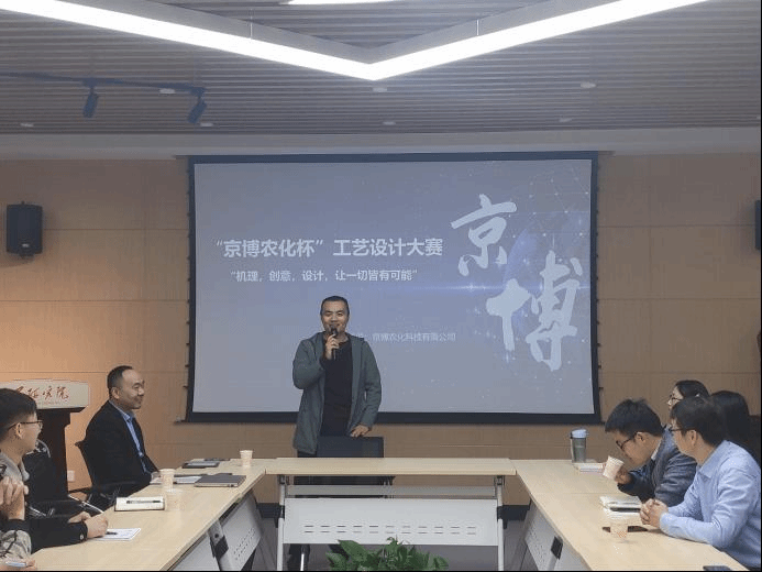 京博农化科技有限公司技术总监王祥传博士详细介绍了活动时间、参赛内容、评分标准及活动奖励,他从企业设计工程需要注意的市场潜力、成本分析、安全环保等方面向同学们解释了此次工艺设计大赛评分要点。王祥传博士讲到“京博农化杯”工艺设计大赛活动目的为了能提高在校生对理论知识的应用水平,为脱裤吧