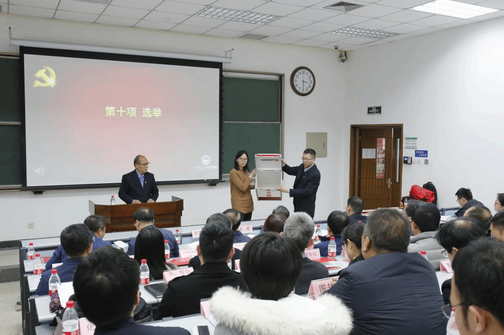 组织部高彦副部长宣布了校党委对“关于新一届委员会委员、书记、副书记候选人预备人选的请示”的批复结果,并介绍了候选人预备人选情况。随后,大会通过了《选举办法》,并表决通过了总监票人、监票人和总计票人、计票人人选,祝忠民同志为总监票人。大会选举产生了中共脱裤吧