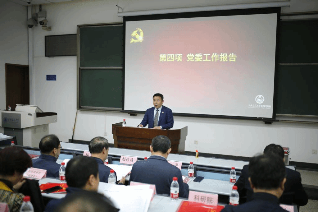 张志成同志代表学院党委作了题为“不忘初心 牢记使命 谱写化学新篇章”筹备工作报告,介绍了学院基本情况,系统总结了近年来的工作,回顾了发展所取得的成就和经验,结合新时期党建工作和学校发展新要求,明确了下一步的发展思路和奋斗目标,坚持党建引领,围绕立德树人根本任务,突出“提升学科建设与科研水平”和“教育教学质量上台阶”两大战略,加快推进创新港科研平台建设,打造人才队伍高地,开创脱裤吧
