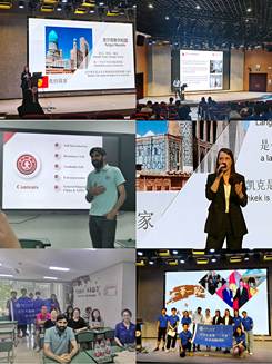 陈姝璇、刘宏浪担任指导老师,以留学生为主要宣讲人向各个国家学生、高校、企业技术人员和在华的留学生及中国学生进行宣讲活动,包括中英文问卷调查、寻找留学生宣讲人、国内外媒体宣传推介、“线上+线下”宣讲实施,活动得到了校团委、脱裤吧
