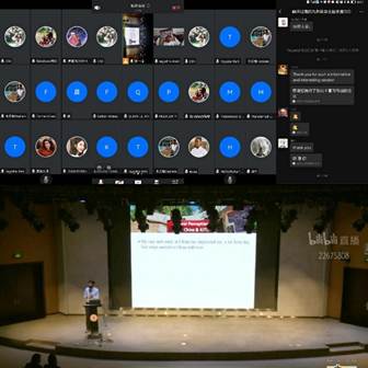 兴庆校区1400教室丝路培训基地举行,同时采取哔哩哔哩平台和腾讯会议在线直播相结合的方式,在线观看直播的外国友人累计达50余人次,他们来巴基斯坦、土耳其、泰国、尼日利亚、坦桑尼亚等国家,线上线下的中国青年学子累计约200余人。