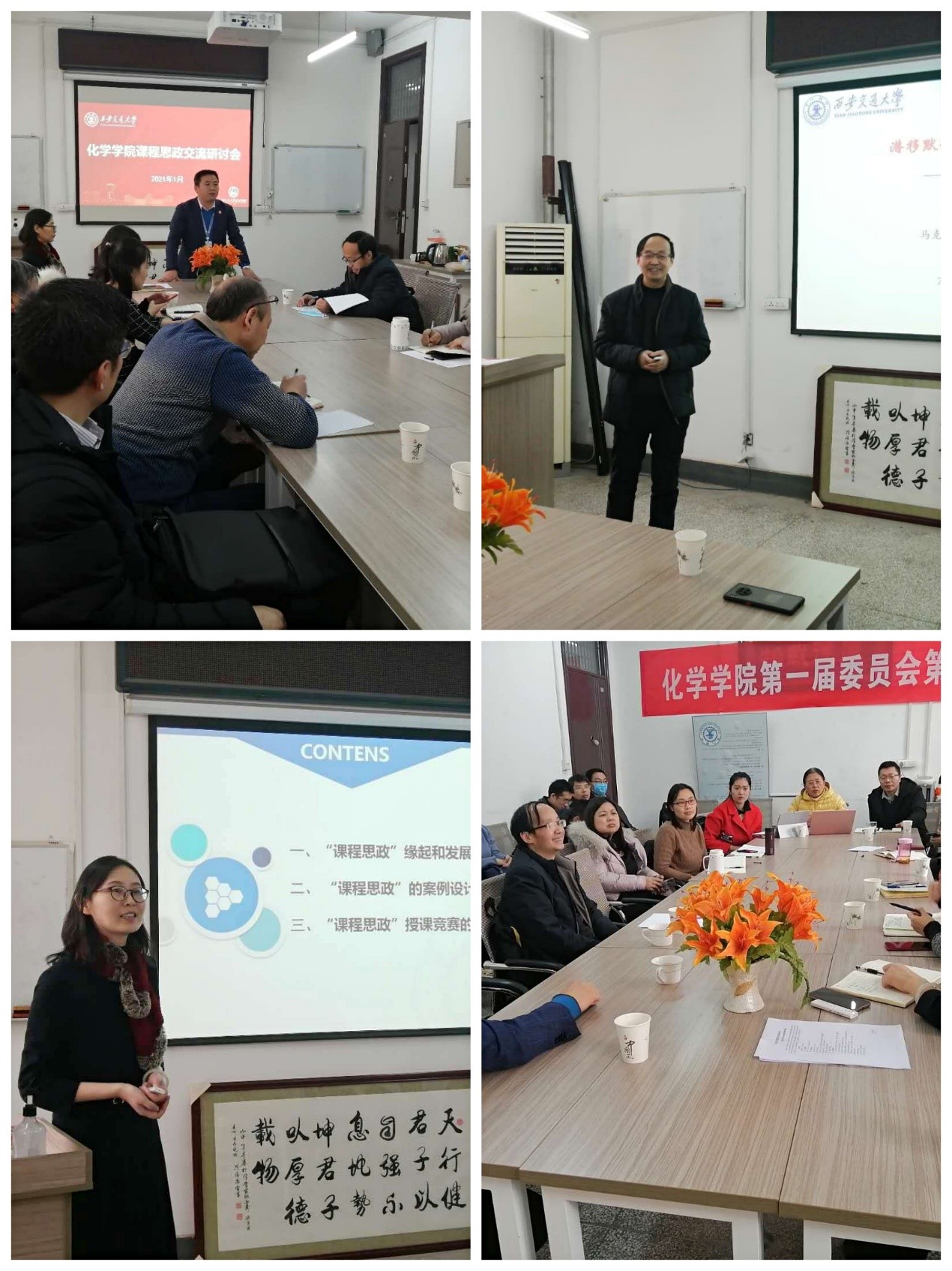 1月22日上午,学院特邀请马克思主义学院田建军副教授针对大学化学教学中的思政元素挖掘做了专题报告。田建军教授围绕“潜移默化、润物无声”的主题,从课程思政演变历程、如何理解专业课程的思政元素、大学化学课程如何与思政有机融合三个层面进行了课程思政建设的精彩讲授。张雯老师结合自身实践经验从课程思政的案例设计与实施到如何进行课程思政授课竞赛的准备工作等方面娓娓道来,为大家呈现了一场“入脑入心”的生动汇报。