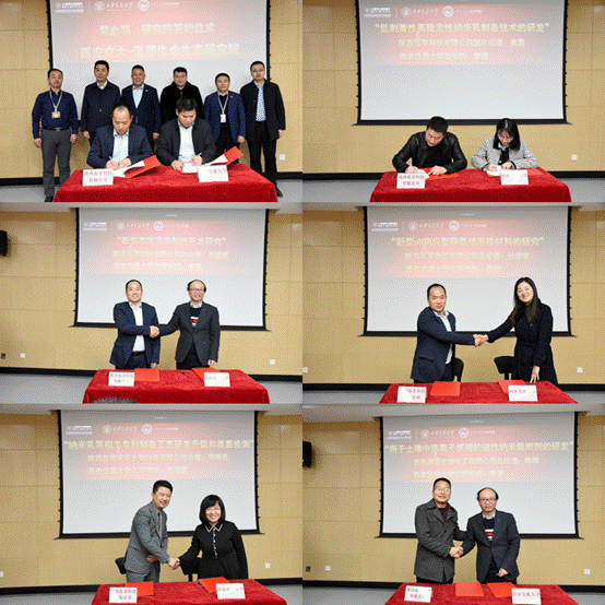 与陕西泓芽科技有限公司和青岛洛唯新材料股份有限公司正式签订协议,分别共建 “西安交大-泓芽生命生态研究院”和“西安交大-青岛洛唯石墨基新材料研究院”并举行揭牌仪式。西安交大校长助理洪军、科研院常务副院长黄忠德、教育基金会副秘书长邢晓强、陕西泓芽科技有限公司董事长崔铎瀚、青岛洛唯新材料有限公司董事长高洪国、陕西肌理研颜生物科技有限公司总裁苟晓亮、西安鼎盛生物化工有限公司董事长陈琳以及其他企业代表和学校教师代表等出席。仪式由脱裤吧