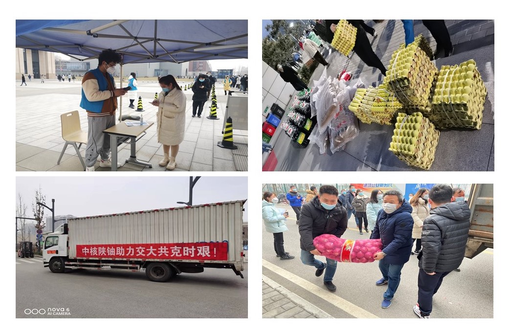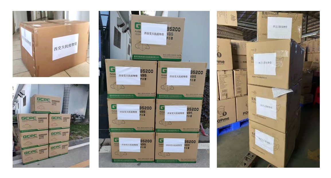 西安不是孤岛,爱心没有隔离。这是一方有难、八方支援的动人图景,是同舟共济、众志成城的生动实践,凝聚起了战胜疫情的强大合力。12月31日,中核陕西铀浓缩有限公司租用专车送来了水果、蔬菜和副食品;1月1日北京伊诺凯科技有限公司捐赠的免洗手消毒液、连体防护服,山西佳维新材料股份有限公司捐赠的袋方便面、香肠、小面包等。1月2日风润智能装备股份有限公司蔬菜、水果,陕西中华蓝天化工新材料有限公司捐赠的苏打饼干、老干妈等。1月5日,宁夏天鑫源生物科技有限公司的捐赠的清真食品,风润智能装备股份有限公司、西安市衡阳商会、卡尔蔡司(上海)管理有限公司等一批批物资纷纷到来……防疫物资由学校疫情防控指挥部统一分配,新鲜蔬菜由后勤保障部协调发放,水果及副食品被第一时间发放给学院学生手中。