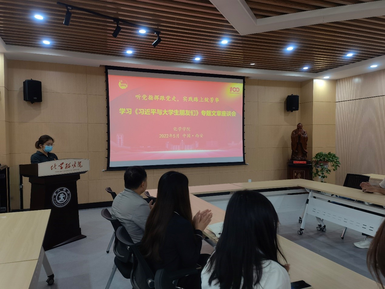 学院团工委学生副书记、硕0113班团支书张璐带领大家学习了《习近平与大学生朋友们》专题活动,引导同学们深切感悟习近平总书记对青年学生的关心关爱和殷殷嘱托,深刻感受习近平总书记的思想伟力、领袖风范,切实增强忠诚核心、拥戴核心、看齐核心、捍卫核心的政治自觉、思想自觉、行动自觉,努力成长为堪当民族复兴重任的时代新人。张璐同学也在最后分享了自己的学习心得:“我们要牢记习近平总书记殷殷嘱托,埋头苦干、勇毅前行,不负时代、不负韶华,在新时代新征程上留下无悔的青春奋斗足迹,为国家建设贡献出我们的青年力量,以实际行动迎接党的二十大胜利召开。”