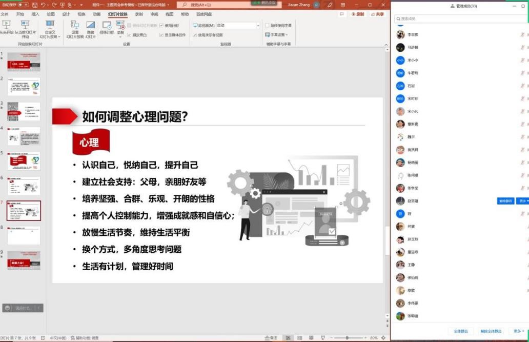 S0112班心理委员李欣慰组织本班同学开展了线上心理主题班会,讲解了“如何保持乐观的心态”“如何调整自己的心理状态”等命题,加强了人文关怀和心理疏导,帮助同学们进行心理减负。