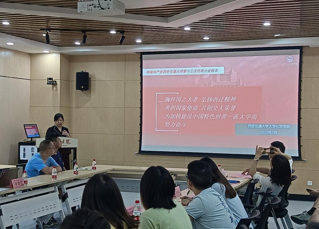 第十三次代表大会报告》,她高度总结了十二次党代会以来“五个坚定不移”的主要工作以及”九个坚持“的宝贵经验,提醒大家深刻认识和把握面临的形式任务和奋斗目标的“三个必须”以及未来五年重点任务目标的“九个更加”,强调坚持和加强党对学校工作的全面领导推动学校内涵式教育高质量发展。最后寄语,胸怀国之大者,弘扬西迁精神,勇担国家使命、共创交大荣誉、为加快建设中国特色世界一流大学而努力奋斗!
