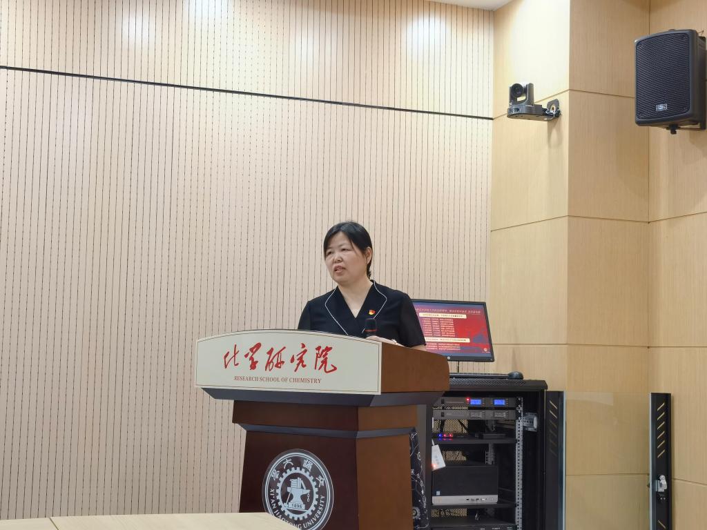 发展历史沿革,有序介绍了学院发展现状与学科布局;提出了目前化学学科发展面临的问题与挑战及对于学科发展的思考。她指出化学学科理应面向世界科技前沿,开展挑战导向型研究;面向经济主战场,开展质量导向型研究;面向人民生命健康,开展使命导向型研究;面向国家重大需求,开展任务导向型研究。最后,梁军艳老师将化学发展与哲学有机结合起来,对化学发展进行了哲学定位,鼓励我们为了学科发展贡献出自己的一份力量!