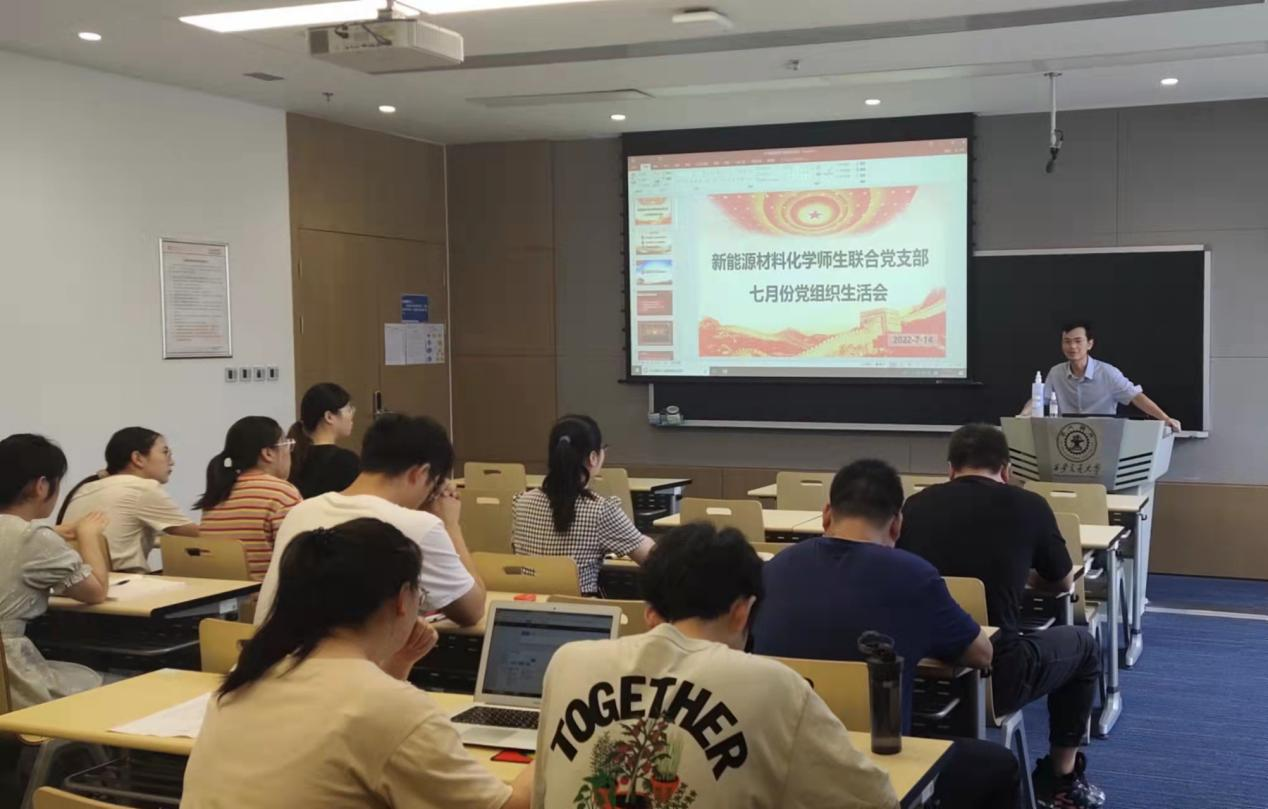 新能源材料化学研究所师生联合党支部召开7月党组织生活会,专题学习我校第十三次党代会精神,同时认真学习了庆祝中国共产党101周年精神,并对暑期实验室安全进行了教学。会议由支部书记杨晓龙主持,支部教师党员及学生党员参加本次会议。