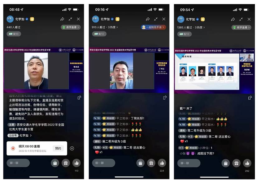 2022年全国优秀大学生夏令营在“云”端举行。本届夏令营活动吸引了全国百余所高校的500余名优秀学子报名,最终有150名学生入营参会。夏令营活动于7月22日上午八点半正式开营,通过腾讯会议、B站和化学加多个宣传平台进行了直播宣传,脱裤吧