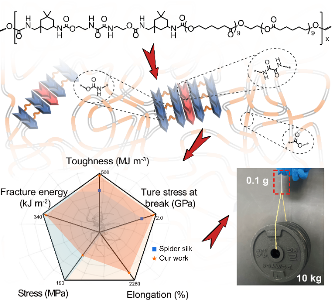 近日,该研究成果以《基于多级氢键相互作用,具有前所未有的抗裂性、极其强韧的可生物降解聚氨酯弹性体》(Extremely Strong and Tough Biodegradable Poly(urethane) Elastomers with Unprecedented Crack Tolerance via Hierarchical Hydrogen-Bonding Interactions)为题发表在期刊《先进材料》(Advanced Materials)上。该论文第一作者为西安交大脱裤吧
