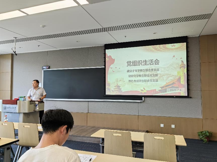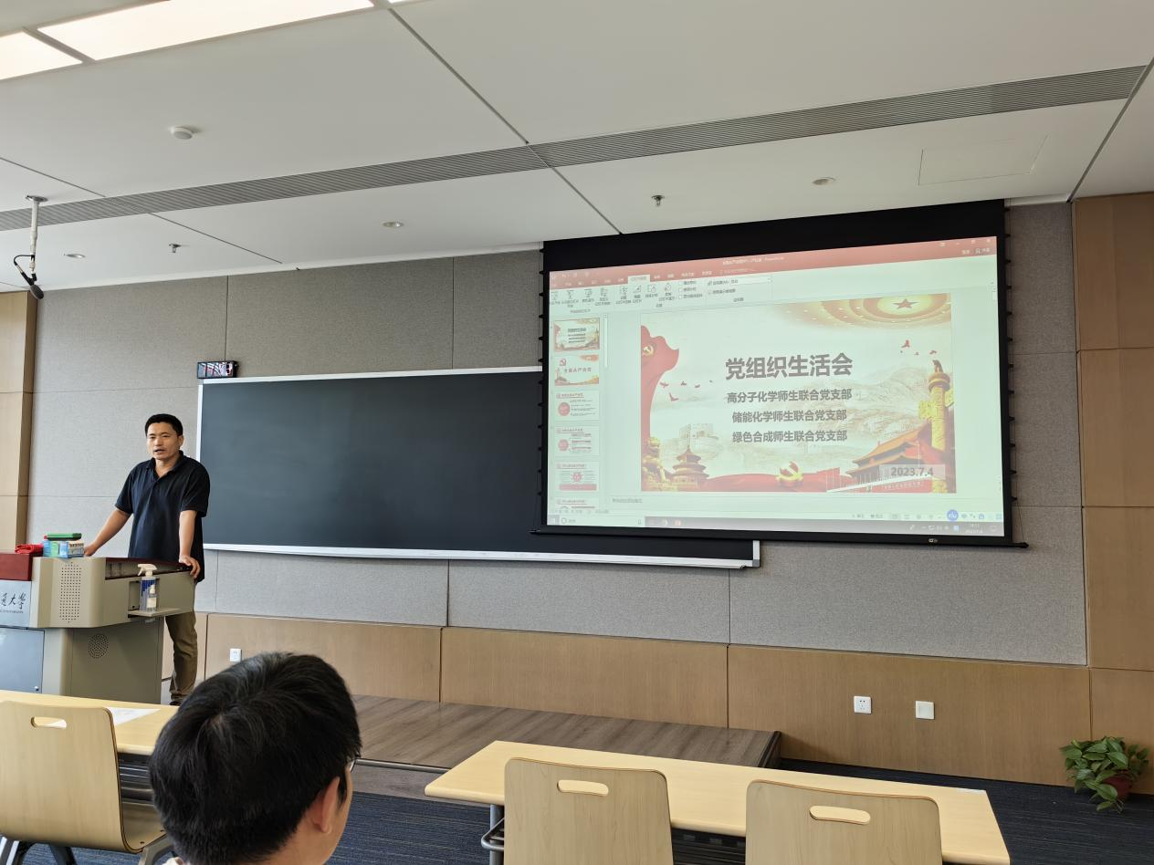 2023年7月4日脱裤吧 高分子化学师生联合党支部、储能化学师生联合党支部、绿色合成师生联合党支部于泓润楼19-4110室召开六月党组织生活会。会议由绿色合成党支部书记刘乐老师主持,三个支部全体党员同志参与了此次组织生活会。严红昌副书记以“全面从严治党”为题,为师生党员同志讲授了一堂生动精彩、思想深刻的专题党课。