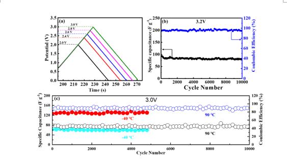 该研究成果以“Ultrahigh-voltage aqueous electrolyte for wide-temperature supercapacitors”(《超高压水系电解液用于宽温超级电容器》)为题发表在国际期刊Journal of Materials Chemistry A 上。该论文第一作者为脱裤吧