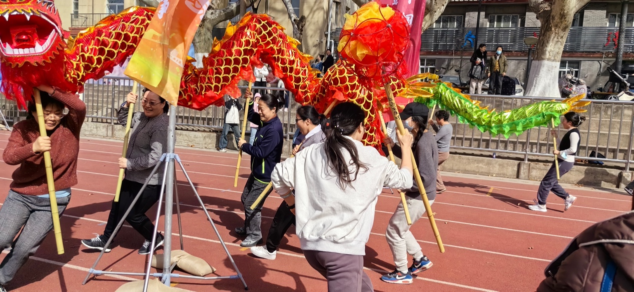 在龚红红老师手举龙珠一路领跑,手握龙头的梁老师带大家奋力追赶下,学院该项目取得了全校第四名的名次。