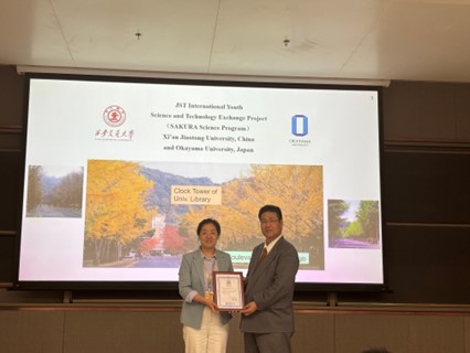 焦佼老师向Yasushi NISHIHARA教授颁发新港报告纪念证书并赠送纪念品。Yasushi NISHIHARA教授和师生们合影留念。