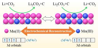 化石能源的过渡使用导致大气中二氧化碳 (CO2) 含量急剧增加(>420 ppm),造成了严重的气候变化和能源危机。开发经济高效的CO2捕集和利用技术对于实现全球能源与环境的可持续发展具有重要意义。锂-二氧化碳(Li-CO2)电池以CO2作为能源载体,兼具CO2转化利用和能量存储的特点,且Li-CO2电池能量密度高达1876 Wh kg-1,在近年来引起了科研工作者的广泛关注。然而,由于工作气体CO2和放电产物Li2CO3均为热力学的稳定化合物,且Li2CO3是一种宽带隙的绝缘固体,这导致Li-CO2电池在循环过程中CO2还原和析出反应(CORR和COER)动力学缓慢,严重限制了该电池的电化学性能和实际应用价值。为了解决这一难题,科研工作者开发了大量的催化正极,其中过渡金属锰基化合物由于其丰富的晶体和电子结构,在促进CORR和COER过程中表现出了极大的竞争优势。然而,关于Mn基催化剂的具体活性位点和催化机制仍然不明确,并且关于高效锰基催化正极的设计原则也非常匮乏,这严重限制了Li-CO2电池的发展。