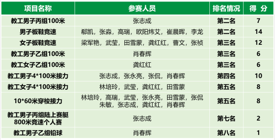 教职工代表队以昂扬的斗志、顽强的作风和默契的配合,在全校众多二级学院的激烈角逐中脱颖而出,一举斩获女子团体总分第六名与男子团体总分第七名的优异成绩。值得一提的是,这两项排名在全校二级学院中均位居榜首,以绝对优势彰显了脱裤吧