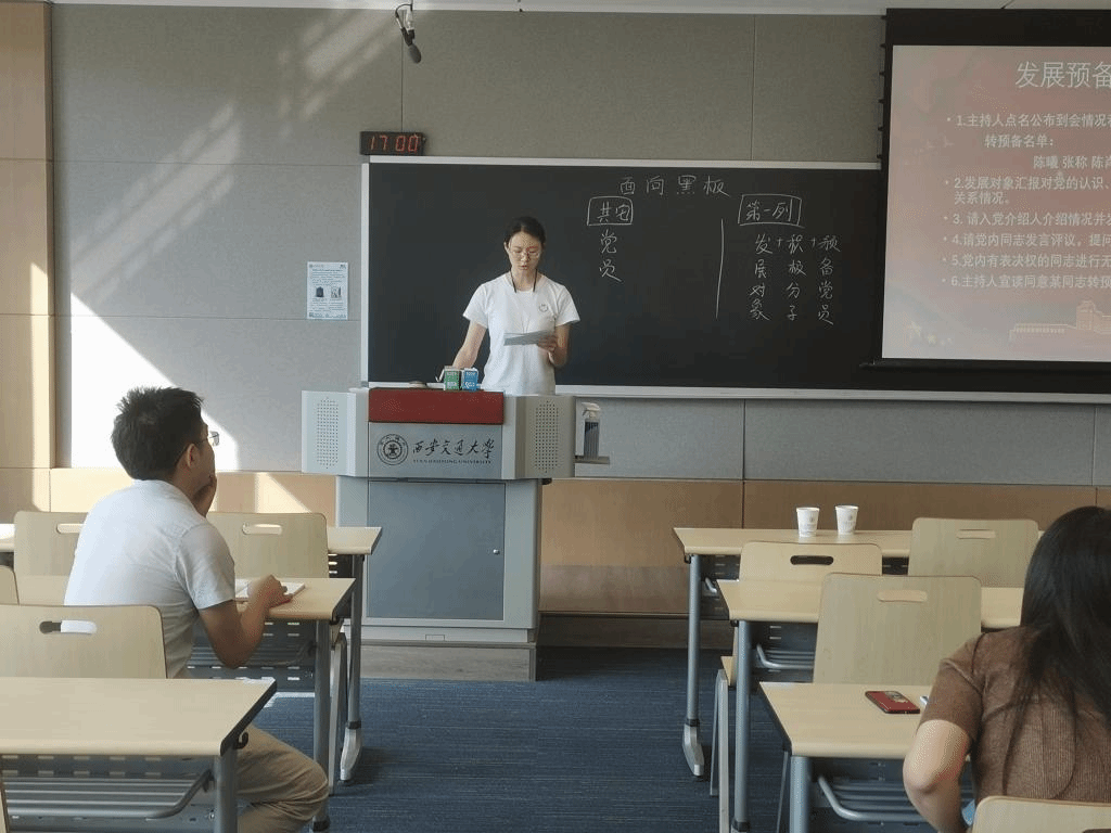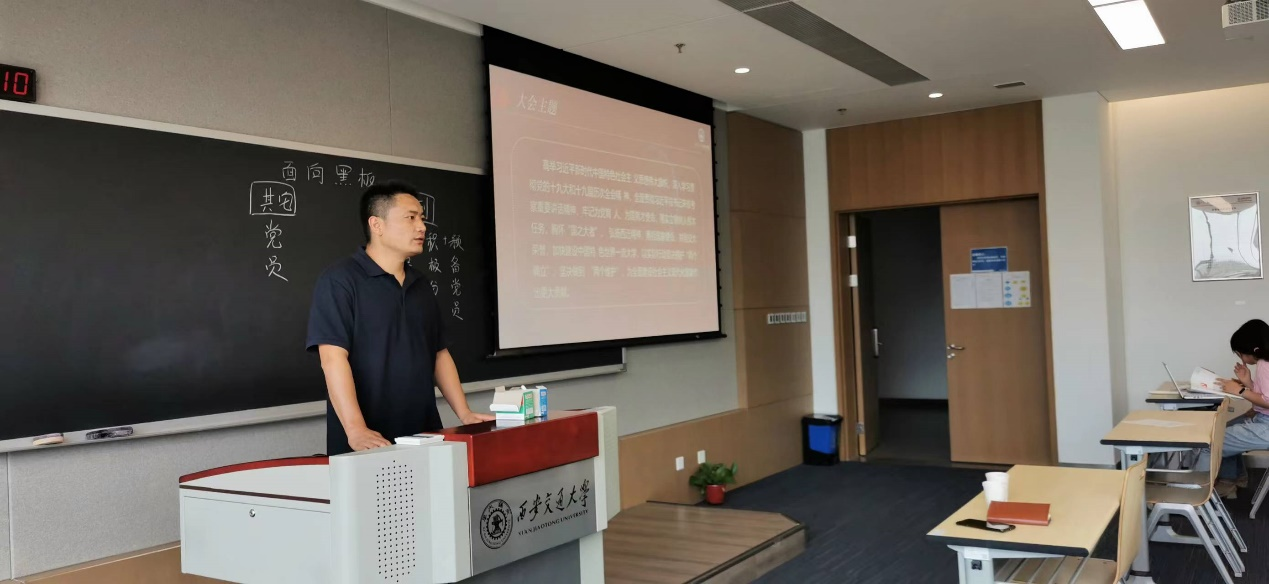 最后,支部书记刘乐老师勉励大家,要继续加强理论学习,认真践行学校十三次党代会精神,努力用自己的实际行动践行好“胸怀国之大者,弘扬西迁精神,勇担国家使命,共创交大荣誉”的党代会主题精神,在各自的工作和科研岗位上发挥好党员的模范带头作用,做出无愧于自己,无愧于时代的成绩,为中华民族伟大复兴贡献力量。