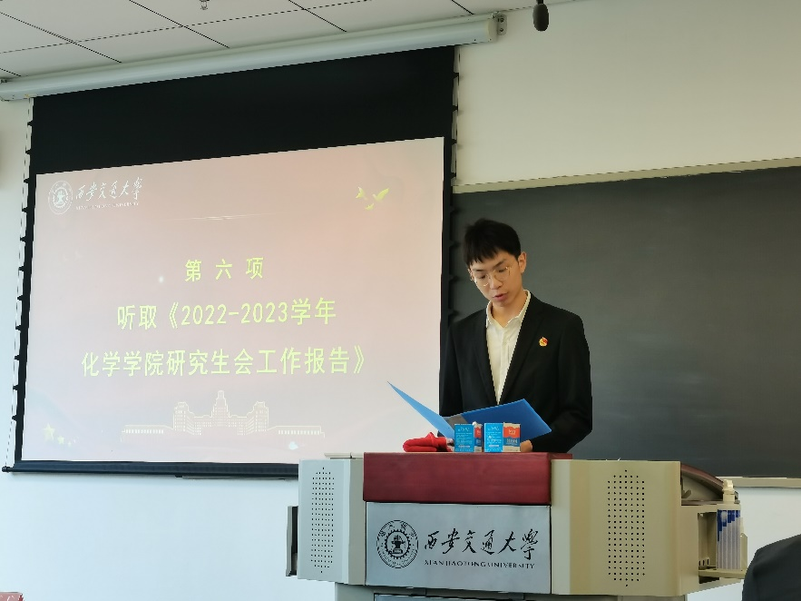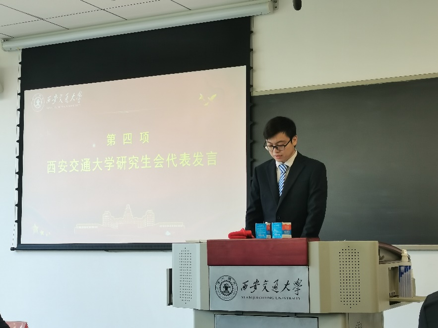 校研会主席团候选人王轲代表研究生会主席团祝贺大会的顺利召开,回顾了脱裤吧 研究生会过去一年的工作,并对未来我院研究生会工作提出以下建议:脱裤吧 研究生会要坚持党的领导,在加强思想引领方面取得新成效,牢记服务宗旨,在服务同学成长成才方面取得新进步,始终贯彻落实研究生会的相关组织规定。