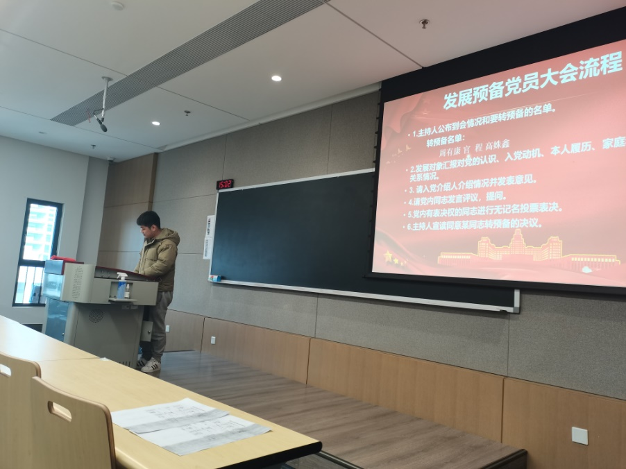 随后大会发展了单其超、苗红杰两位同志为预备党员,经两位同志介绍个人情况、入党介绍人介绍两位同志的基本情况以及党内同志发言后,支部大会讨论表决通过了两位同志转为预备党员的申请。