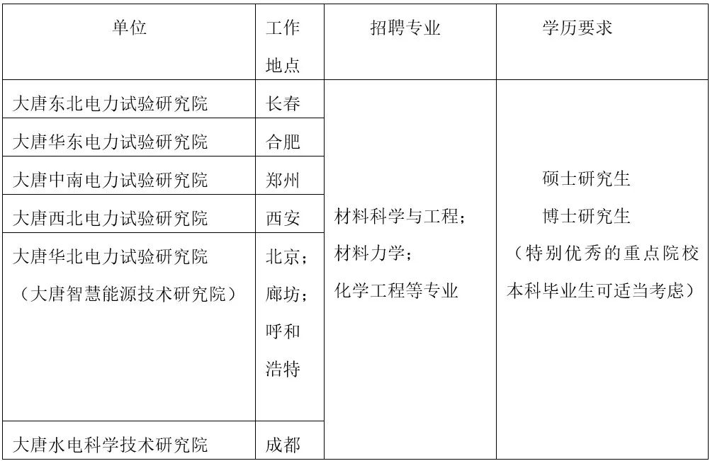 二、中国大唐集团科学技术研究总院有限公司2023年毕业生招聘公告